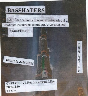 - Andrew Perry / Gish (uk): encore un bon moment pour l'élévation spirituelle de nos âmes dépravées. La blague à part, le duo fera péter les harmoniques, le feedback et l'électroacoustique. Andrew Perry est aussi à la tête de Krayon recordings et c'est déjà pas si mal vu les sorties que son label propose (Bark Haze avec Thurston Moore, C Spencer Yeh, Astral Social Club, Vibracathedral Orchestra, ...).